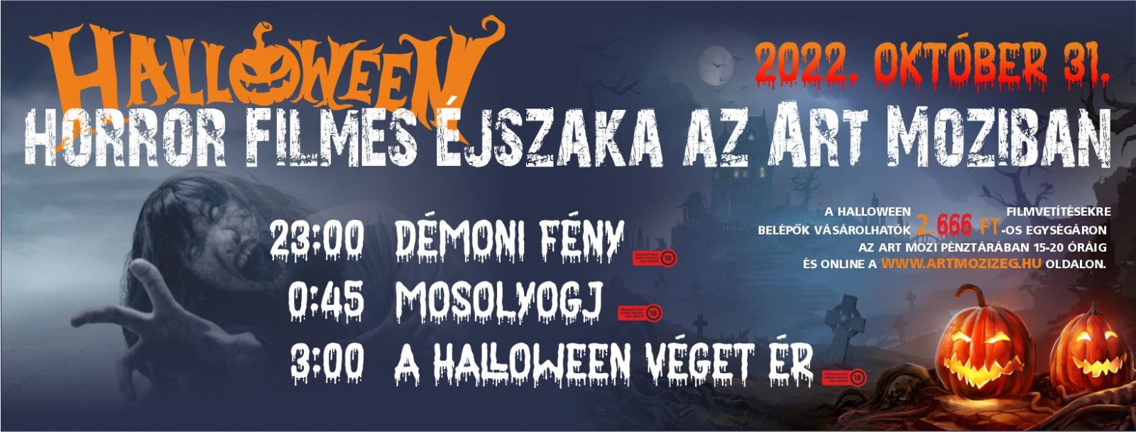 (A belépő tartalmazza a három horrorfilm megtekintésének árát; a vetítésekre külön jegyek nem kerülnek árusításra. A rendezvényre jegyfoglalási lehetőséget nem biztosítunk!)